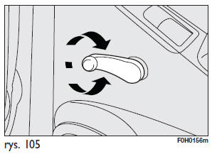 Aby otworzyć/zamknąć szybę obracać korbką rys. 105.