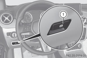 Przy niskim napięciu sieci pokładowej lub w przypadku usterki w systemie może nie być możliwe zwolnienie uruchomionego hamulca postojowego. Powiadomić ASO Mercedes-Benz.