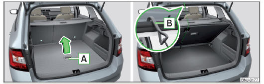 W celu łatwiejszego dostępu, np. do zapasowego koła, regulowana podłoga ładunkowa może być podniesiona i przymocowana za pomocą haczyka do ramy pokrywy bagażnika.